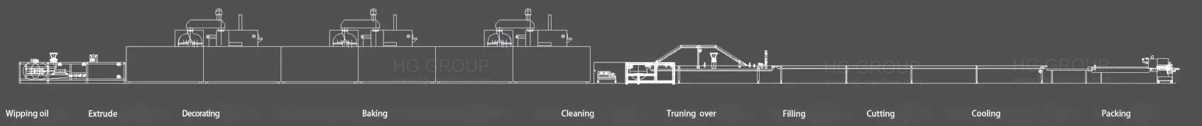 White Lover クッキー シリーズの製品は、その独特の形とサクサクの味により、日本で非常に人気があります。今回、HGグループは成熟した日本の製造技術と高度な製造経験を当社の機械に導入します。さらに、HG は国内の顧客の要求に合わせてそれを改善し、この全自動サンドイッチ薄型クッキー生産ラインを設計しました。当社の専門チームは、材料の積み込みから成形、ベーキング、充填に至るまで、全体的な配置の最適化に専念しました。プロセス全体は完全に自動化されており、安定した実行が可能です。また、健康的で安全な生産を確保するための高品質のサービスも提供します。