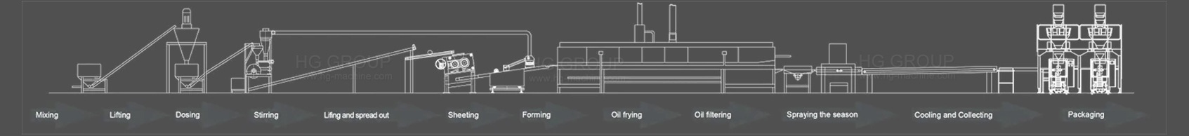 HG グループは、ヨーロッパとアメリカの技術に基づいて、この全自動複合ポテトチップス生産ラインの研究開発に 1 年以上かかりました。この機器はポテトパウダーを原料として使用し、混合、プレス、成形、揚げ、香料を加えることで、カリカリでおいしい複合ポテトチップスを得ることができます。これは今日の食品メーカーにとって好ましい投資プロジェクトとなっています。